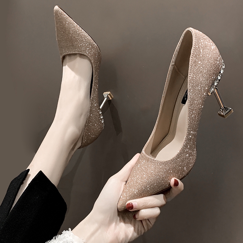 Wedding Shoes New Winter Thin Heel Pointed Sequins French Girl Wedding Shoes Crystal High Heels Shopee Philippines